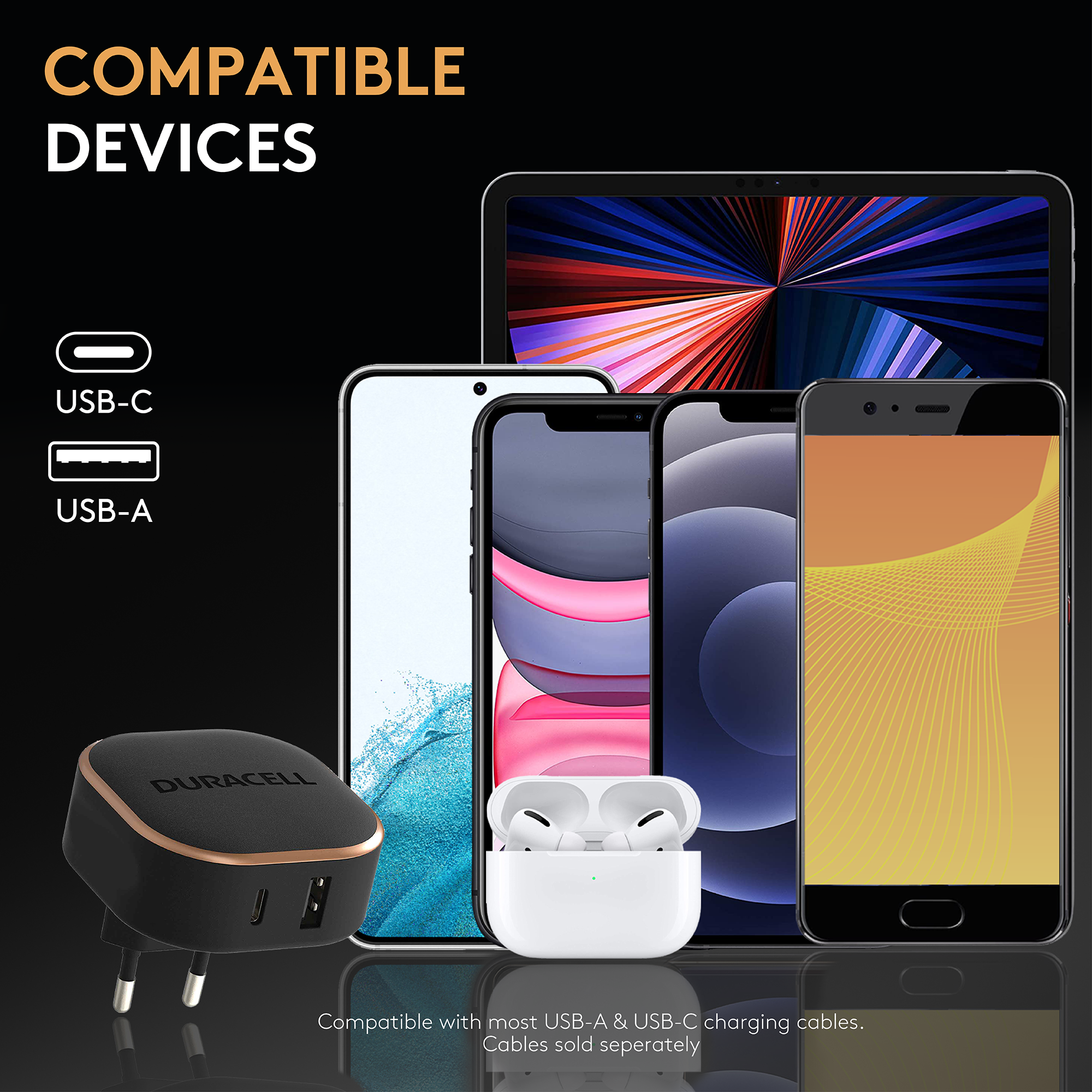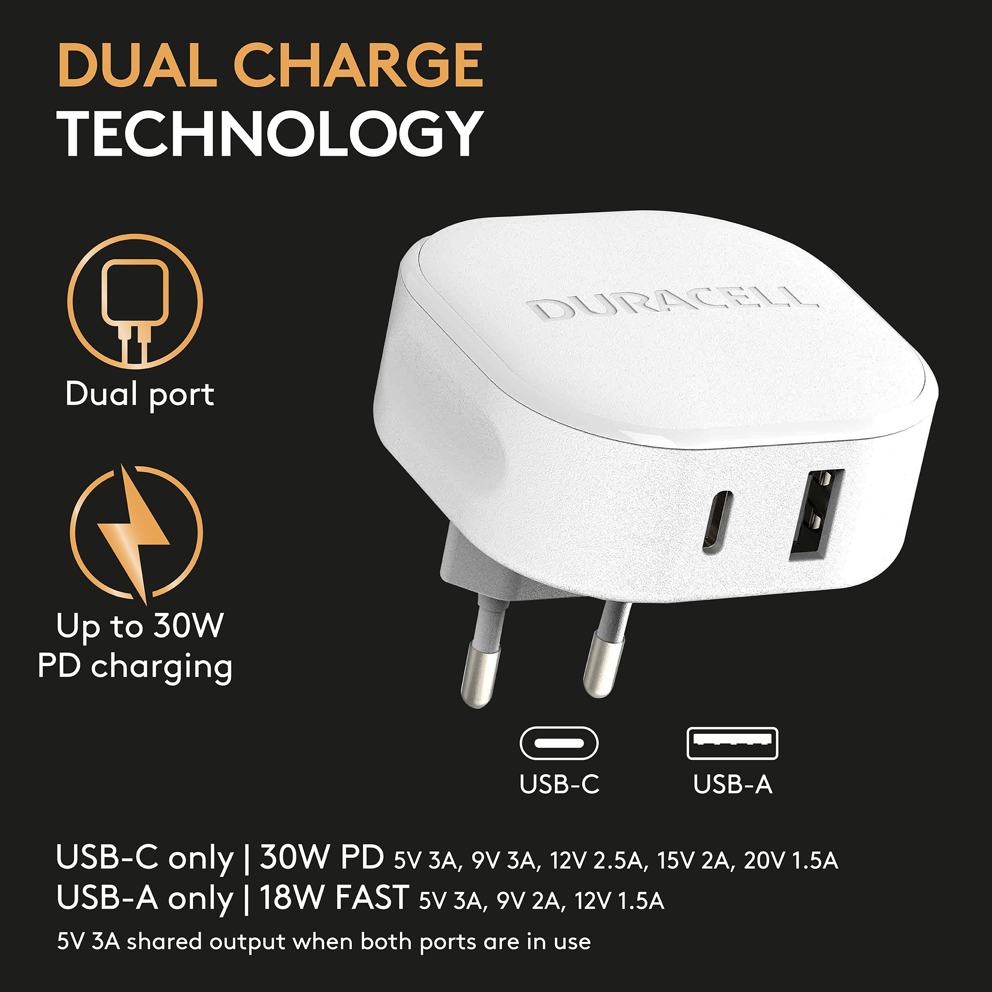 - Duracell 30W USB-A + USB-C PPS Şarj Cihazıyla şarj etmeye daha az zaman ayırın.