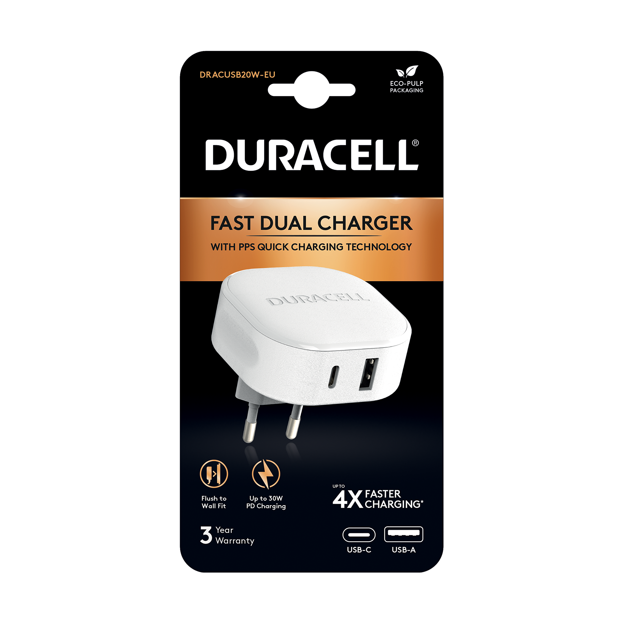 - Standart fişe göre 4 kata kadar daha hızlı şarj sağlayan Duracell 30W USB-A + USB-C PPS Şarj Cihazı, süper hızlı, güvenli ve verimli şarj sağlar.